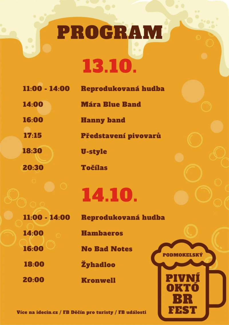Děčín - Pátek 13. a sobota 14. října patří milovníkům zlatavého moku. Husovo náměstí v Podmoklech se promění v dějiště 3. ročníku Podmokelského pivního októbrfestu, který nabídne široký výběr piv i bohatý hudební program.