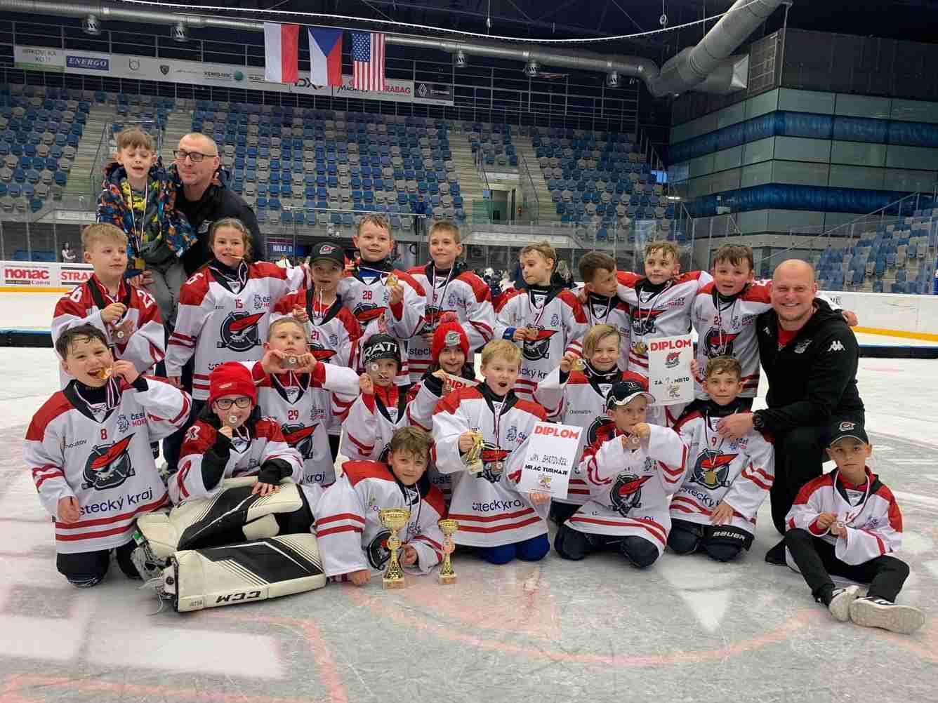 Chomutov – Mladí hokejisté Pirátů Chomutov (4. třída) mají za sebou náročný, ale velmi úspěšný víkend. Ve dnech 5. až 7. prosince 2025 vyrazili do maďarského Győru na prestižní mezinárodní turnaj XVIII. Santa Claus Cup. V silné konkurenci kategorie U10 AAA se neztratili a vybojovali krásné 4. místo.