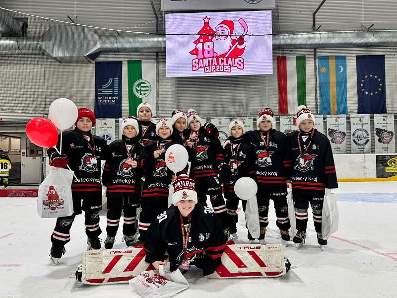 Chomutov – Mladí hokejisté Pirátů Chomutov (4. třída) mají za sebou náročný, ale velmi úspěšný víkend. Ve dnech 5. až 7. prosince 2025 vyrazili do maďarského Győru na prestižní mezinárodní turnaj XVIII. Santa Claus Cup. V silné konkurenci kategorie U10 AAA se neztratili a vybojovali krásné 4. místo.