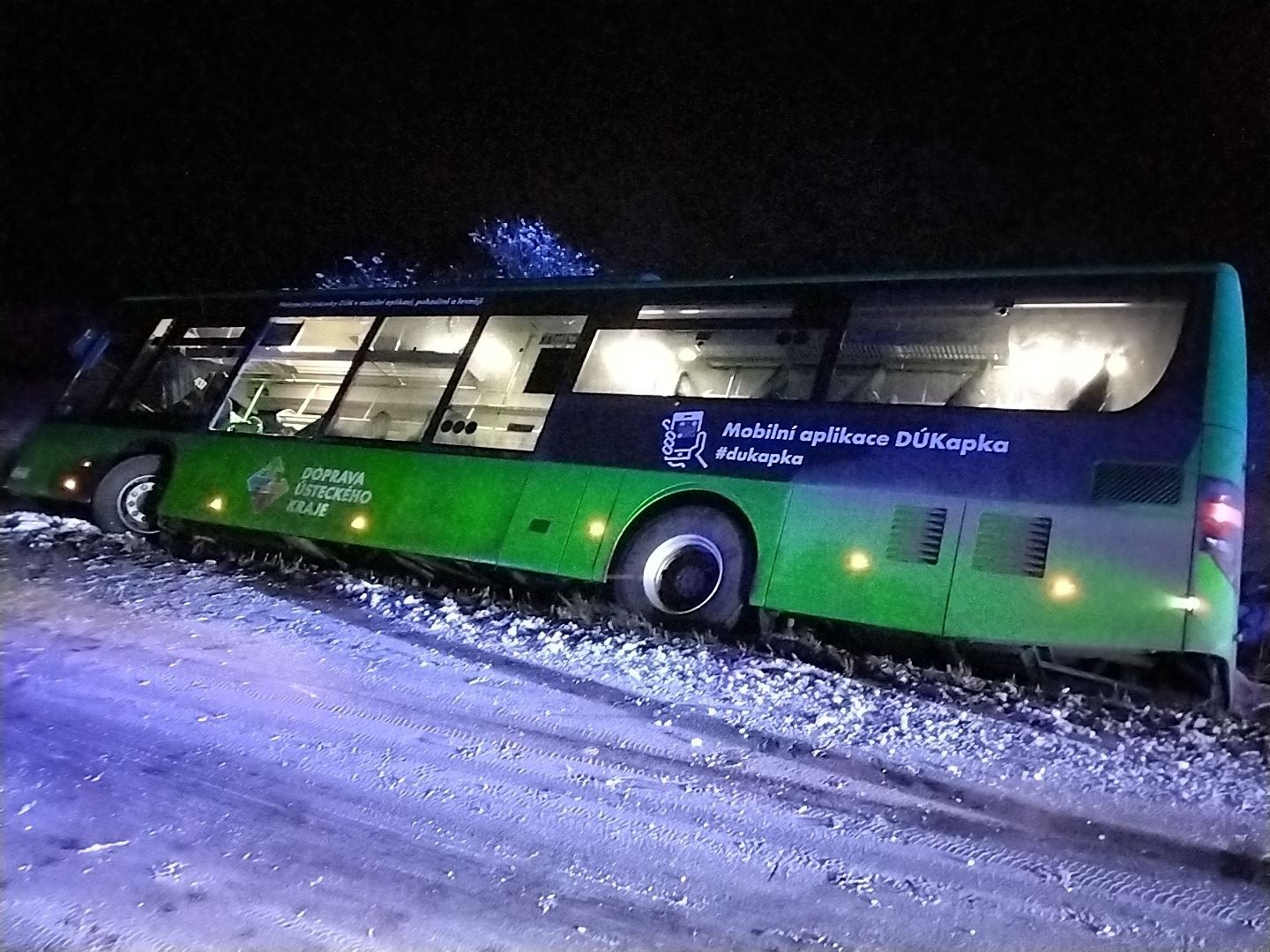 V 18:32 hodin hasiči ze stanice Chomutov, Žatec a Podbořany a dobrovolní hasiči obcí Rudonice a Mašťov zasahovali u dopravní nehody autobusu, který sjel do škarpy u obce Mašťov na Chomutovsku. Hasiči z autobusu evakuovali 10 osob. Dvě osoby si převzala do péče Zdravotnická záchranná služba. Policie ČR zajistila místo dopravní nehody a její zdokumentování. Po zajištění sjízdnosti komunikace byl autobus vyproštěn.