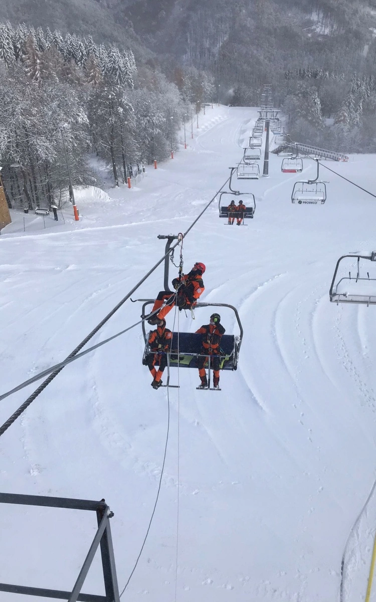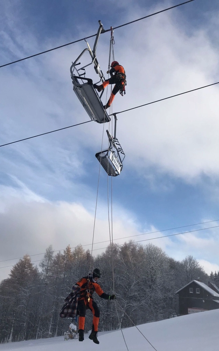 Klíny – Od pondělí do středy se ve Sportareálu Klíny na sedačkové lanovce konal intenzivní výcvik hasičů lezeckých skupin z územních odborů Most, Teplice a Chomutov. Při výcviku se hasiči zaměřili na osvojení si práce ve výšce a nad volnou hloubkou. Cílem bylo provést záchranu osob ze sedačkové lanovky.