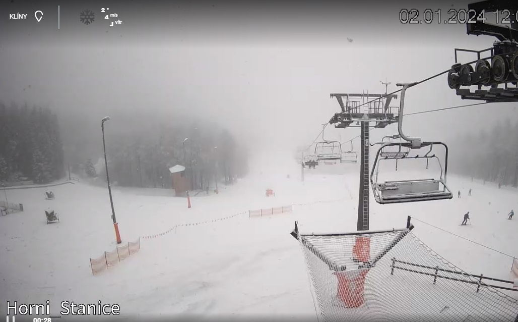 Podívejte se na webkameru Skiareálu Potůčky. Chumelí a lanovka je v provozu, lidí na sjezdovce je minimálně. Jste v práci? Nevadí, lyžuje se až do 20 hodin večer.