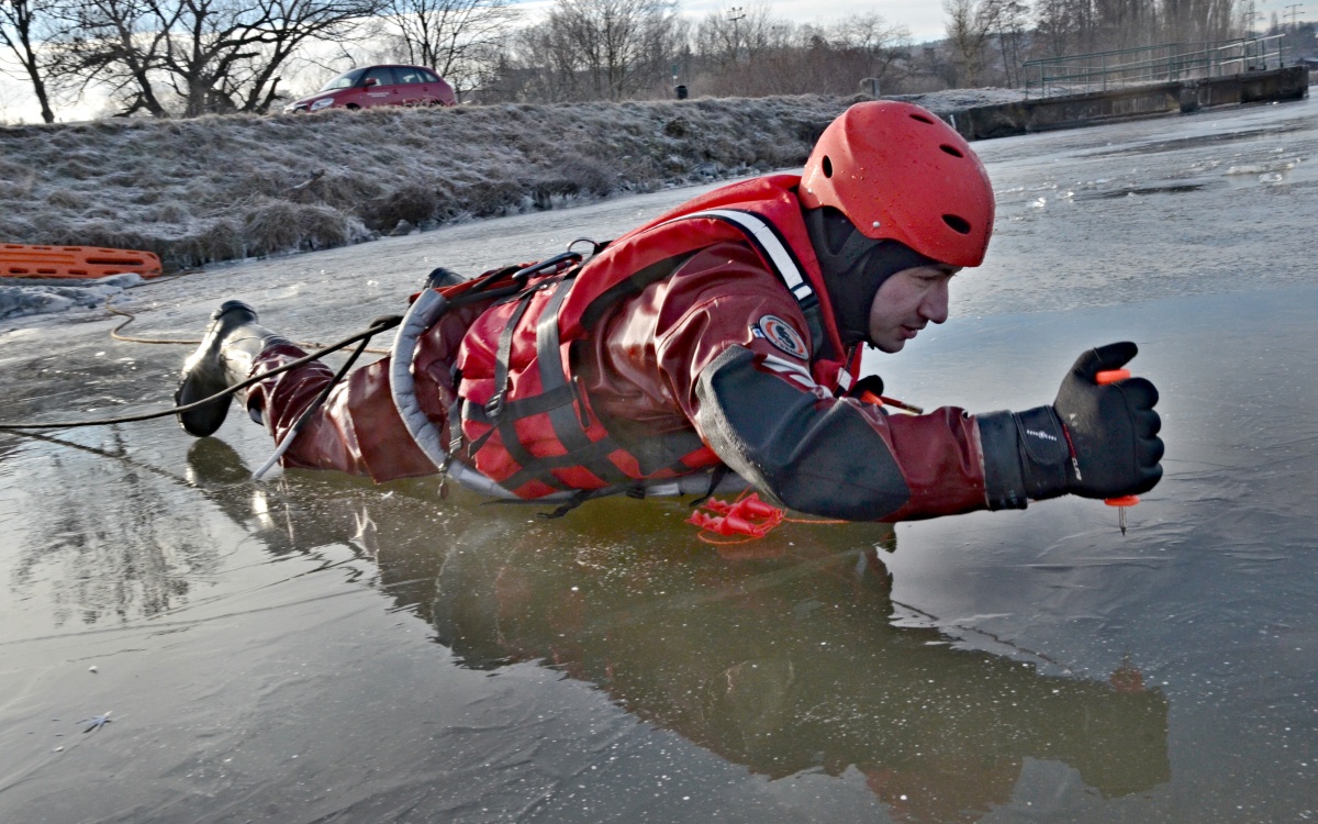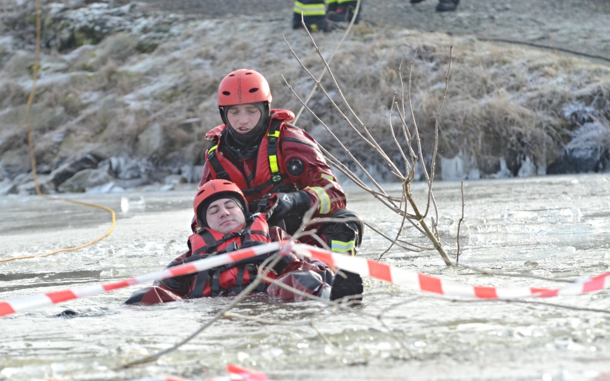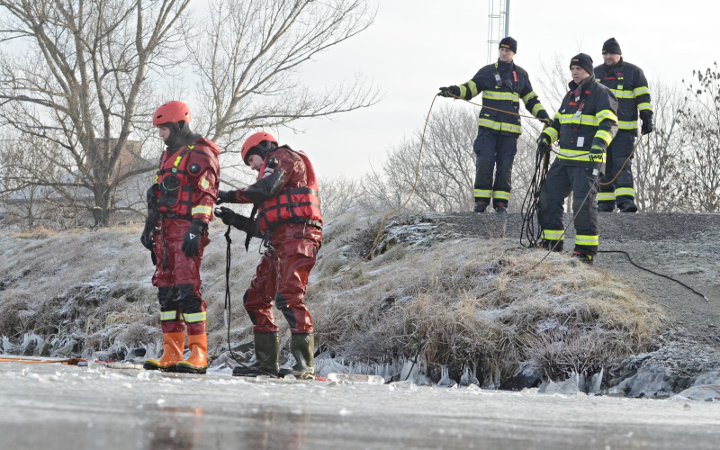 V souvislosti se zamrzáním vodních ploch nacvičují hasiči záchranu osob. Taková záchrana je vždy velmi složitá. Po propadnutí se ledovou plochou je jen velmi malá šance dostat se z vody vlastními silami. V místě propadu se totiž led dále láme, ve studené vodě navíc velmi rychle dochází síly.