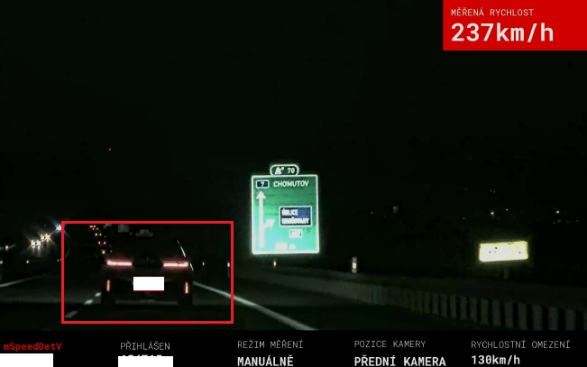 „Během dohledu nad silničním provozem se okolo policistů prohnalo vozidlo BMW 740D XDRIVE, a to rychlostí více než 200 km/h v místě, kde je dovolená maximální rychlost 130 km/h. Hlídka se za vozidlem vydala se svým stíhacím speciálem a na 70. km dálnice D7 ve směru jízdy na Chomutov započala měření rychlosti vozidla, které “uhánělo“ 237 km/h. Řidič tím překročil nejvyšší povolenou rychlost na dálnici o více než 100 km/h," popsal policejní mluvčí Jakub Mareš.
