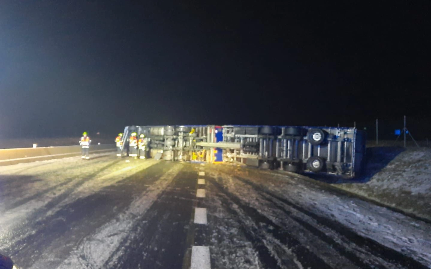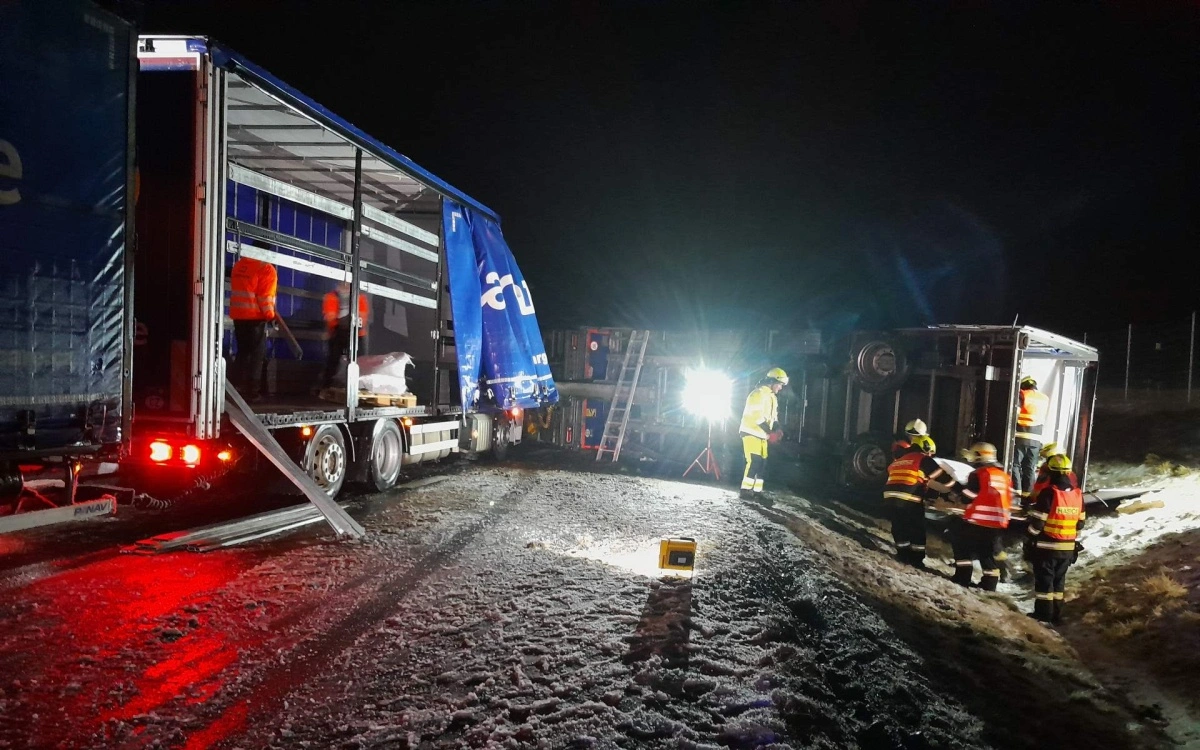 Chomutovsko – Krátce po šesté hodině ráno je stav na silnicích i přes ohlášení nebezpečí z důvodu ledovky poměrně klidný. Dvě nehody jsou ohlášeny z dálnice D7. Při jedné z nich se převrátil kamion na bok.