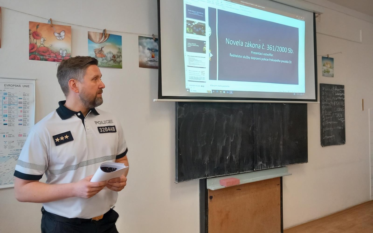 Právě zmíněné novinky v silničním zákoně byly hlavním tématem přednášky pro studenty Střední školy technické, gastronomické a automobilní v Chomutově, které se zhostil zástupce vedoucího chomutovského dopravního inspektorátu.