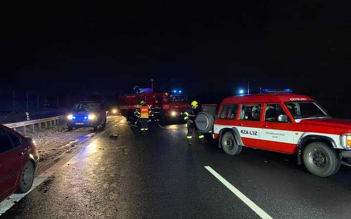 Nehoda se naštěstí obešla bez zranění osob. Hasiči prováděli úklid následků dopravní nehody z komunikace.