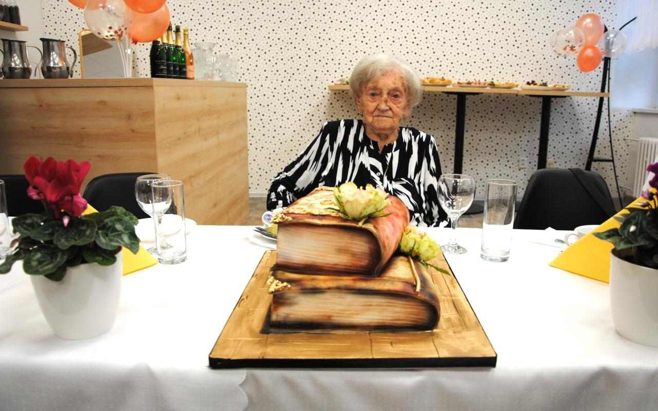 Paní Kubešová se podepsala do pamětní knihy a převzala dárky a květiny. Na dotaz, jestli si dá také šlehačkový dort, bez váhání odpověděla: „No to je bez debat!“