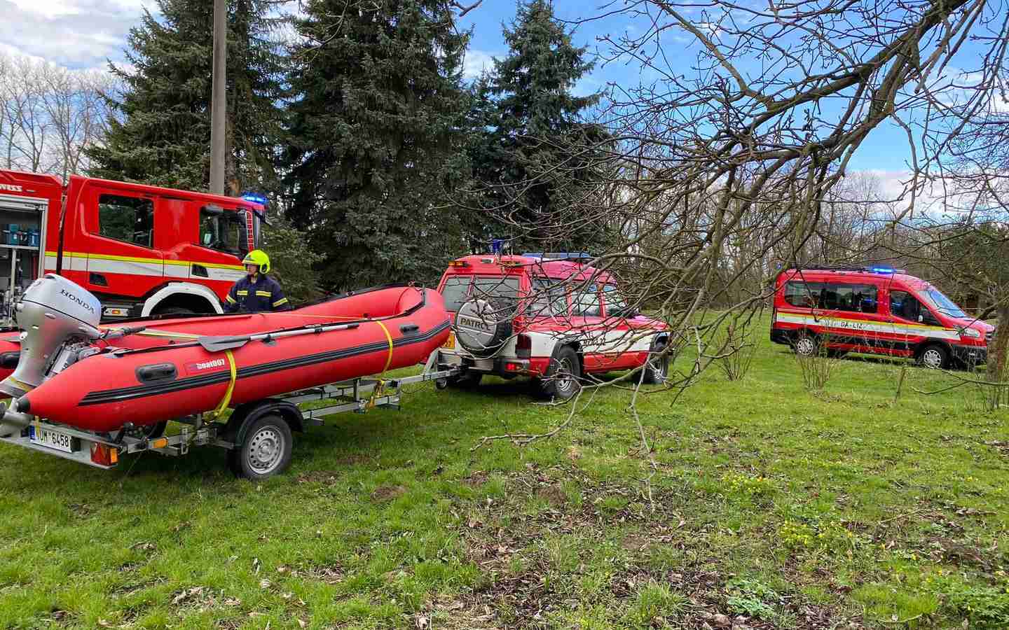 Pátek - V sobotu se sjeli hasiči a policisté do obce Pátek na Lounsku. V místní vodní nádrži tam hledají člověka, který měl do vody spadnout.