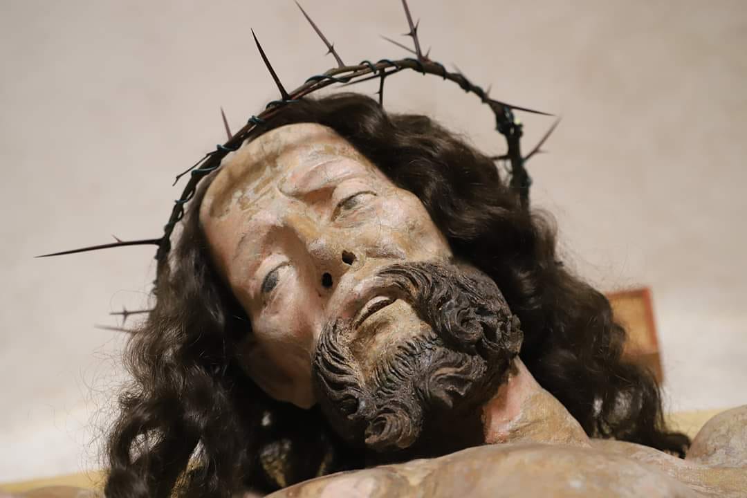 Gotickou sochu Krista doplnil nový kříž, paruka i trnová koruna. Foto: Petr Liebscher