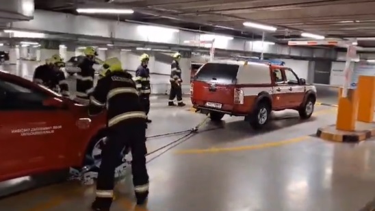 „Ve dnech 15.-17. dubna proběhl v podzemních garážích obchodního domu Central Most společný výcvik příslušníků ze stanic Most a Chomutov zaměřený na evakuaci vozidel speciální sadou transportních vozíků při případném požáru v podzemních garážích," informoval hasičský záchranný sbor Ústeckého kraje.