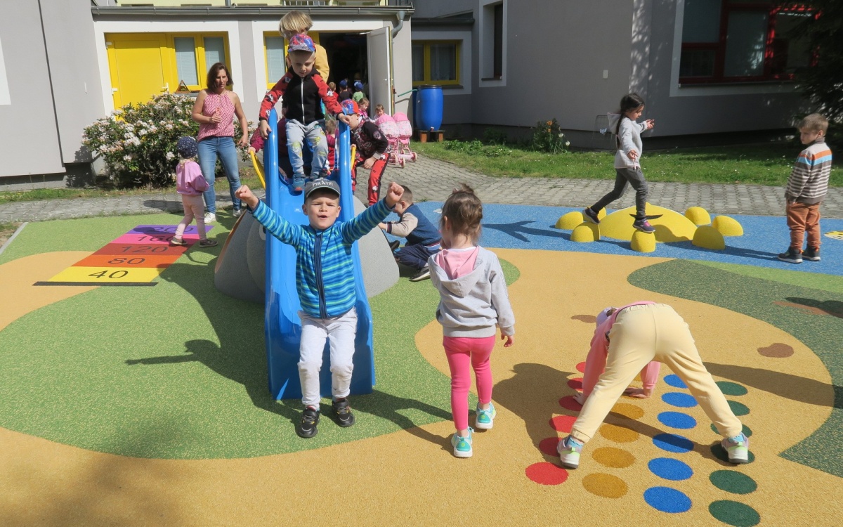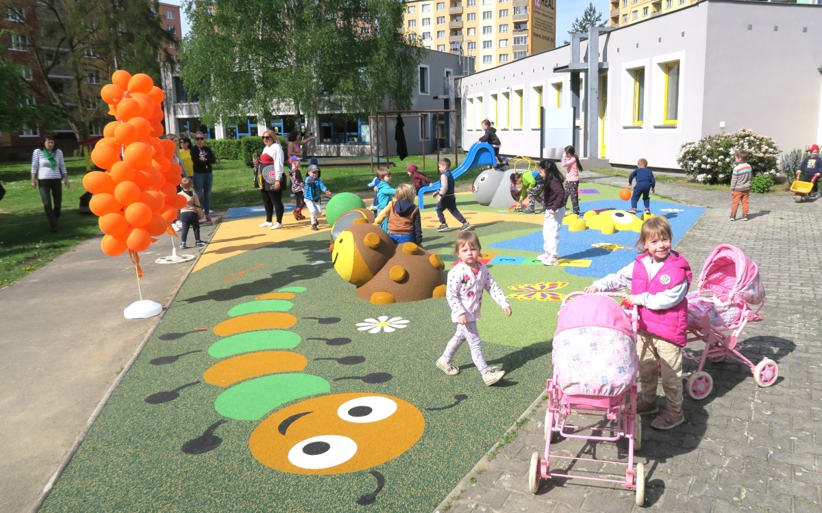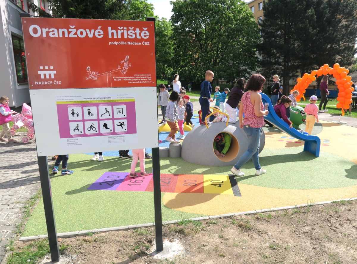 Chomutov – Rodina Oranžových hřišť Nadace ČEZ se rozrostla o další nové – pro nejmenší, z něhož se od pondělí 29. dubna radují děti z Mateřské školy Pohádka na sídlišti Kamenná v Chomutově. Realizaci zajímavých a hlavně originálních herních prvků umístěných na speciálním povrchu umožňujícím větší využitelnost zahrady v jarních a podzimních měsících, kdy jinak bývá podmáčená, podpořila Nadace ČEZ jedním milionem korun.
