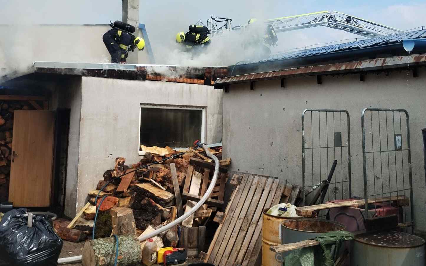 "K likvidaci požáru hasiči použili dva vodní proudy „C“, řezací zařízení COBRA a rozebrali část střechy. Zásah byl proveden v dýchací technice a za použití výškové techniky," popsali hasiči.
