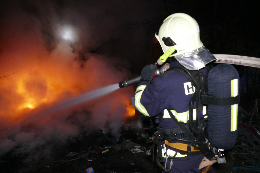 Chomutov - V noci hasiči likvidovali požár v prostorách panelového domu v ul. Školní pěšina v Chomutově.