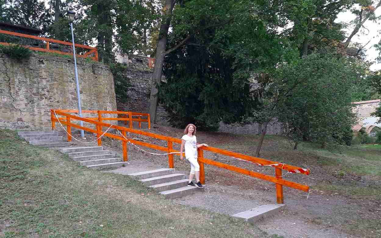 Jirkov - Venkovní schodiště vedoucí od břehu zámeckého rybníku k Červenému Hrádku má nové dřevěné zábradlí.