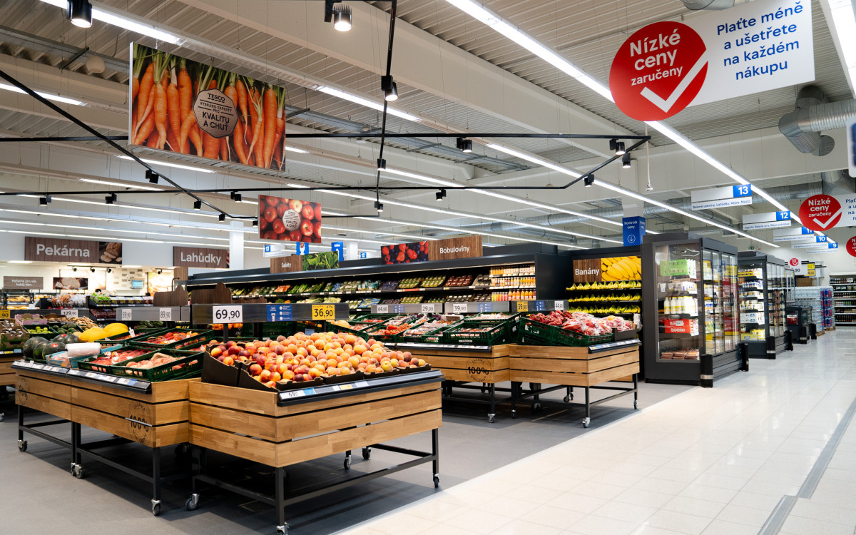 Kompletní rekonstrukce je patrná již při vstupu do prodejny, fasáda je nově šedá s LED podsvícenými logy. „Zákazníci se mohou těšit na modernější vzhled. Zároveň je provoz šetrnější k životnímu prostředí. Týká se to například nové technologie použité pro systém chlazení nebo instalace dveří na chladničky, které vedou k výrazným úsporám elektrické energie. Úplně jsme proměnili oddělení s módou F&F, kde jsme vyměnili osvětlení, podlahy a regály a přidali jsme podsvícené logo. Naše značka F&F je oblíbená zejména mezi zákaznicemi, které zde nakupují stylové módní kousky za skvělé ceny,“ doplnil Patrik Dojčinovič, provozní ředitel Tesco pro Českou republiku. Kompletní renovací prošla oddělení ovoce, zeleniny a pekárna, která jsou nově spojená v jeden celek, a také část s obslužnými pulty lahůdek a masa. Prostor pro výkup lahví byl zvětšen v rámci příprav na novou legislativu, která zavádí systém zálohování a vykupování PET lahví a plechovek. Změny se dotkly i celkového zázemí prodejny, od výměny podlah až po výmalbu stěn.