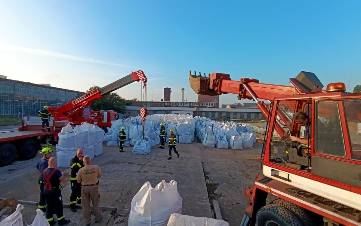 Pyrotechnikům pomáhají na místě kolegové z hasičského záchranného sboru – konkrétně HZS Ústeckého kraje, Záchranný útvar HZS ČR z dislokací Hlučín, Jihlava, Zbiroh, HZS podniku Unipetrol. V bezpečném prostoru plní pytle s pískem a připravují je k odvozu. Poskytli také k manipulaci a pohybu v nebezpečném prostoru potřebnou techniku. Celkově hasiči přivezli 11 speciálních strojů, kterými jsou: