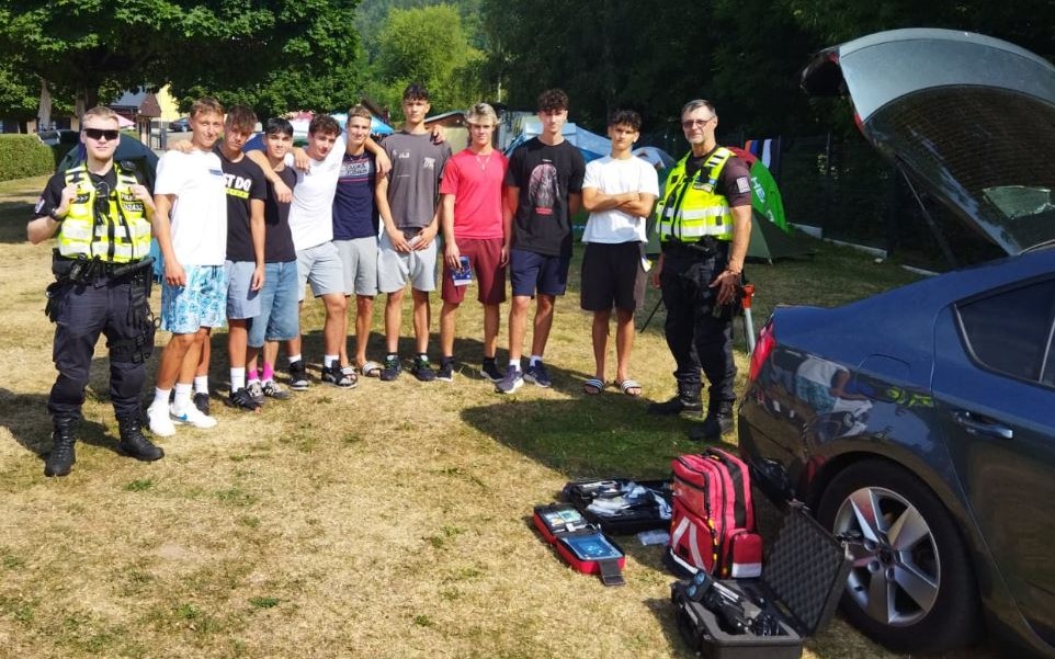 Tito mladí se připravují na působení v některém z bezpečnostních oborů. Za pár let se s nimi můžete potkat například i v policejní uniformě. Na koupališti v Pernštejně si pro ně ukázku své specializace připravilo několik policistů. Foto: Policie ČR