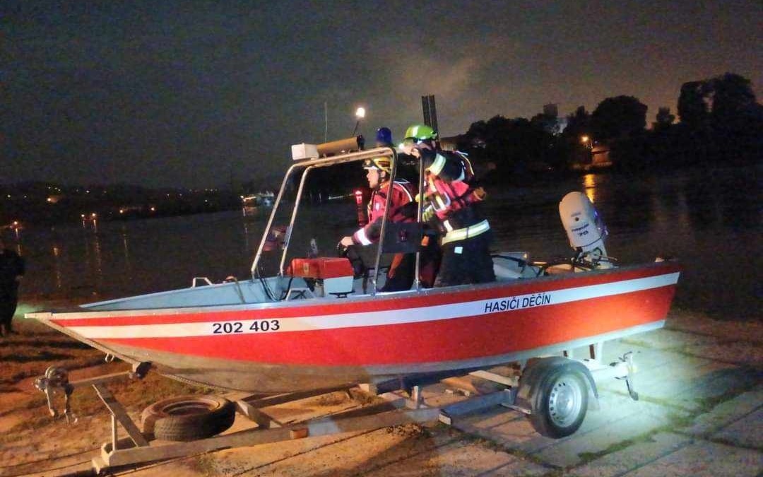 Do akce se zapojil i policejní vrtulník a také hasičský dron. Po půlnoci k Labi vyjeli v Děčíně profesionální hasiči z děčínské stanice a dobrovolní hasiči z Horního Žlebu. Hlídka PČR, která spatřila osobu jako první, vhodila do řeky chemické světlo z důvodu sledování rychlosti proudu vody. Tato světelná značka byla naposledy spatřena v oblasti Těchlovic na Děčínsku. „Osoba nebyla nalezena, zásah byl ukončen ve středu v 5:22 hodin. Dnes bude pátrací akce pokračovat," uvedl mluvčí HZS.