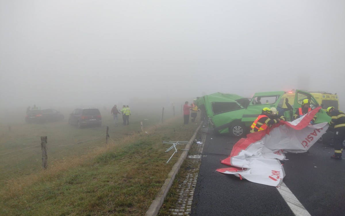 Chomutovsko – K tragické dopravní nehodě došlo v úterý krátce před půl druhou hodinou odpolední na silnici I/7 u Křimova nedaleko Hory Svatého Šebestiána. U čerpací stanice se srazily 4 osobní vozy a jeden kamion. Na místě je velmi nepříznivé počasí, proto vrtulník letecké záchranné služby přistál už u Chomutova.