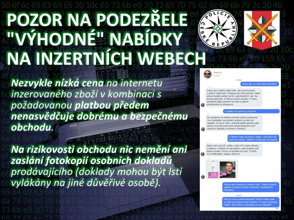 Policisté opětovně upozorňují na podobné případy, kdy kupující zaujme většinou výhodná nabídka levnějšího zboží, nebo třeba nabídka věci, která jinde není dostupná. Neodradí je pak ani požadavek k zaslání platby předem, přičemž jinou možnost tento „prodávající“ ani nenabízí. Často se jedná o podvod, kdy falešný prodávající koupenou věc nezašle a peníze samozřejmě nevrátí… „Buďte tedy opatrní při nákupech přes internet a platbu předem využívejte skutečně jen u ověřených prodejců," varuje na závěr policejní mluvčí.