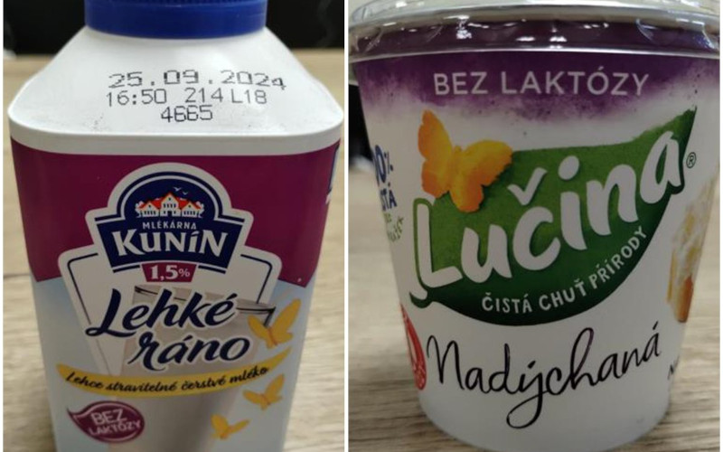 MLÉKÁRNA KUNÍN Lehké ráno Čerstvé polotučné mléko bez laktózy, datum použitelnosti: 25. 9. 2024, šarže s označením: L18, výrobce: Mlékárna Kunín, s.r.o., č.p. 291, Kunín, provozovna Ostrava – Martinov. Laboratorní rozbor v potravině prokázal přítomnost laktózy v množství 20,8 mg/100 g (limit: 10 mg/100 g).