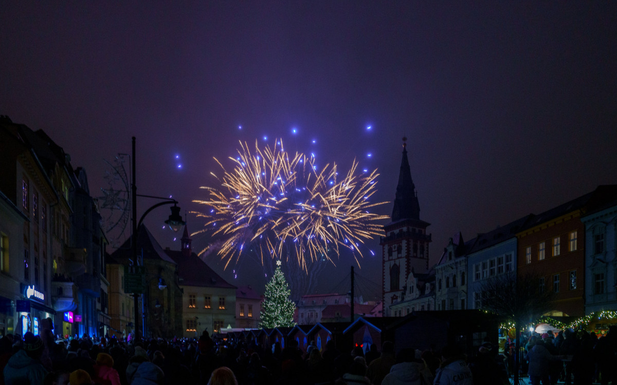 V sousedním Chomutově slavnostně rozsvítili vánoční strom na první adventní neděli. Tradičně si přítomní mohli užít ohňostroj. Foto: město Chomutov