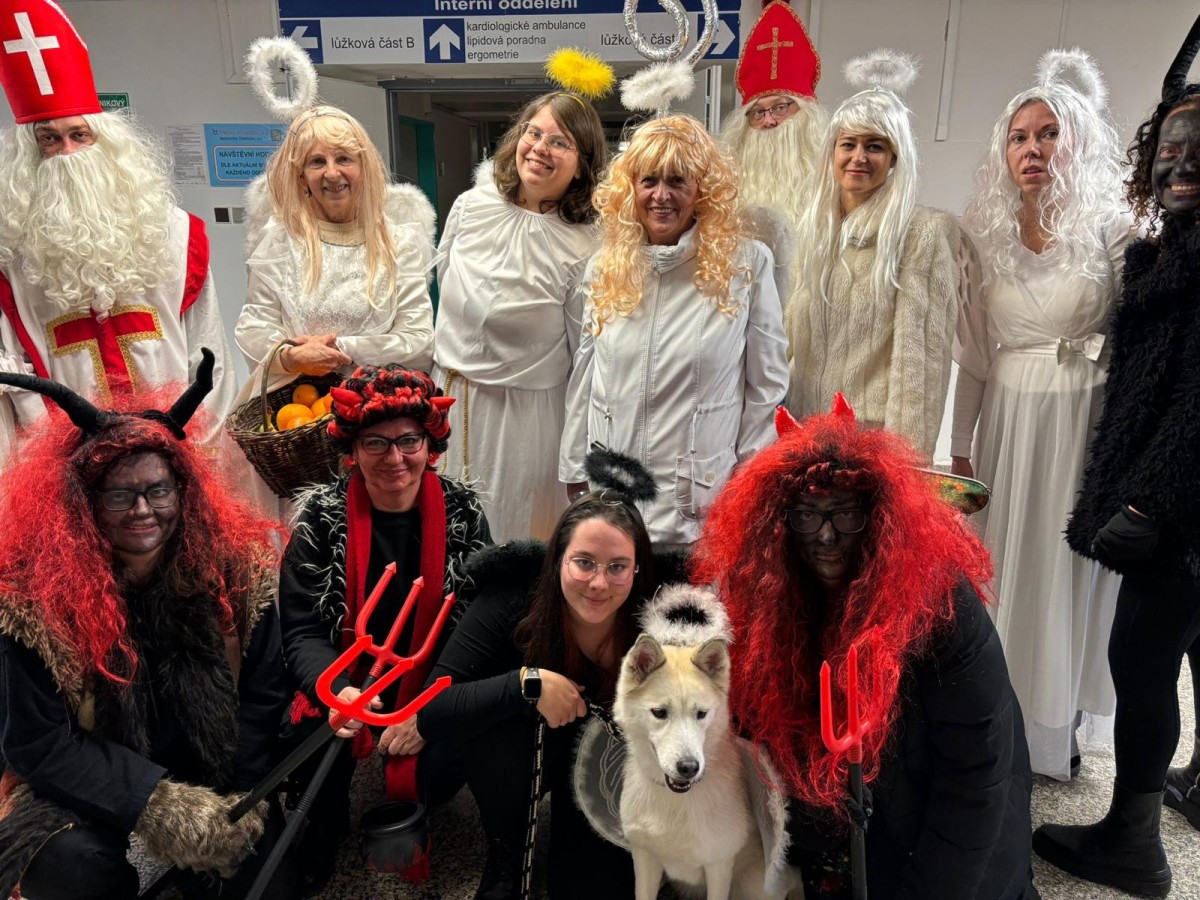 Ve dvou skupinách zvládli obejít 15 stanic na 8 odděleních, kde jejich návštěva pohladila po duši a vykouzlila úsměvy na tvářích pacientů i personálu. Letos prvně byl součástí mikulášské nadílky i canisterapeutický pejsek Lessy v podobě anděla.