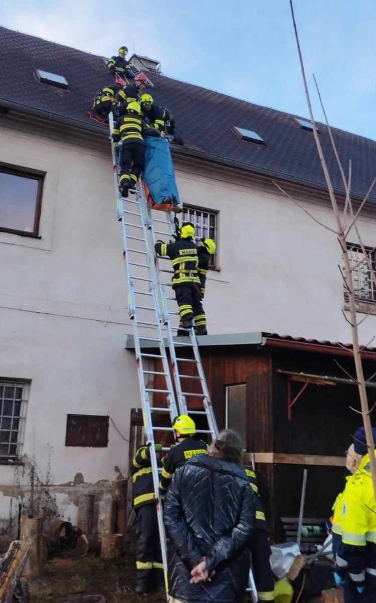 Na místě zasahovala i lezecká skupina. Hasiči pána zajistili a spustili ho ze střechy a posléze jej předali zdravotnickým záchranářům. „Muž byl velmi promrzlý, jeho stav z tohoto důvodu vyžadoval převoz do chomutovské nemocnice," vysvětlil mluvčí záchranářů Prokop Voleník.