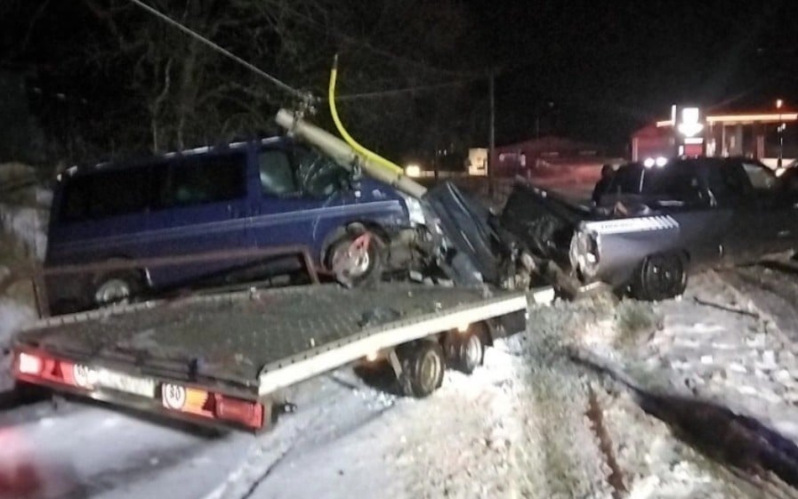 Ústecký kraj – Silná ledovka v Ústeckém kraji potrápila řidiče i ve večerních hodinách. V neděli v 18:42 zasahovali hasiči CHS Ústí nad Labem a HS Petrovice u dopravní nehody automobilu v Petrovicích na Ústecku. Pick-up převážející na podvalníku další vozidlo při nehodě přerazil sloup elektrického vedení, převážené vozidlo částečně sjelo z podvalníku a viselo nad potokem.