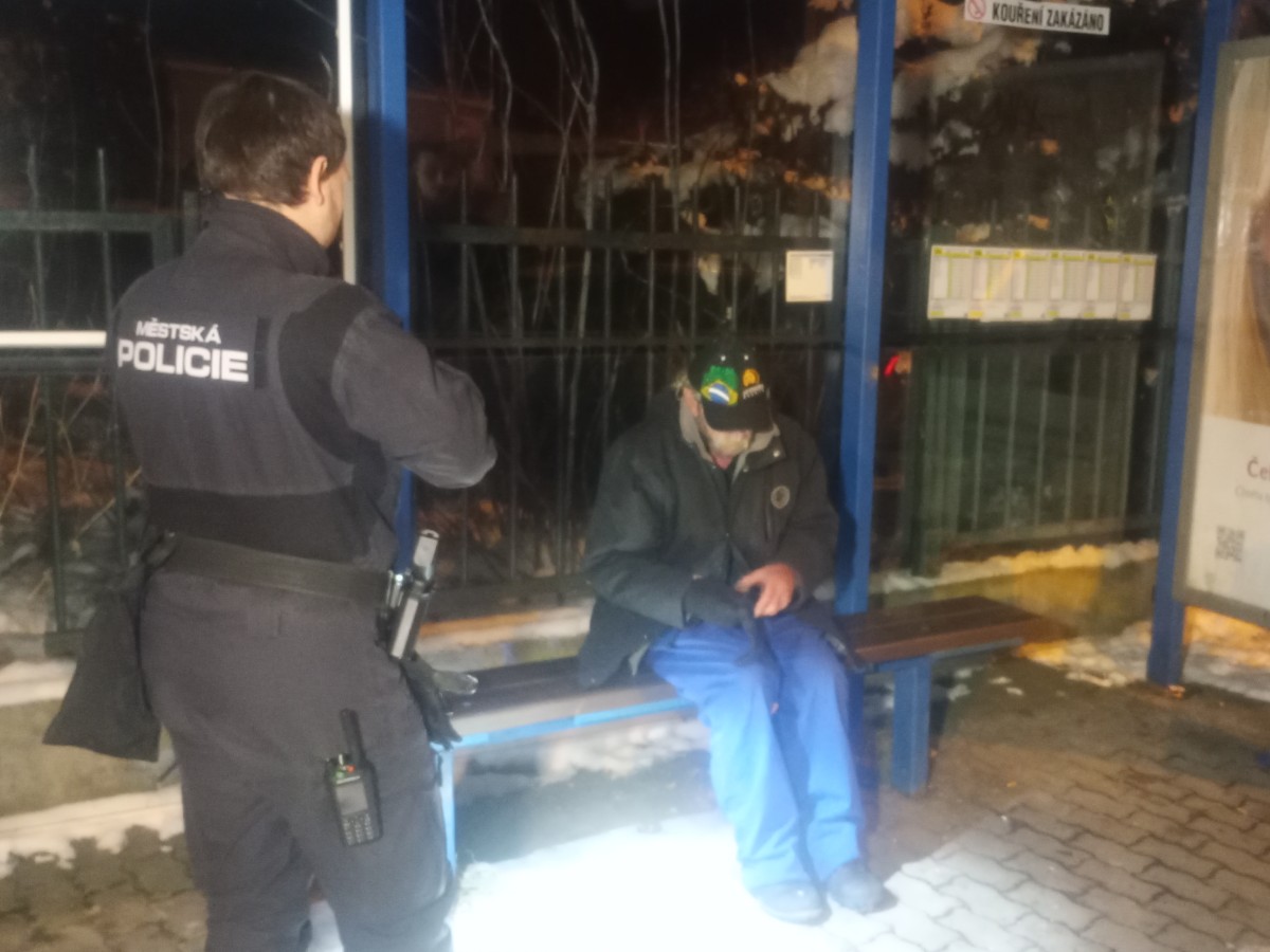 Pacient starší muž (bezdomovec) s podezřením na krvácení do mozku, byl naštěstí po krátkém pátrání několika hlídek nalezen na autobusové zastávce nedaleko nemocnice. Muž byl mírně dezorientovaný a po ztotožnění jej strážníci odvezli zpět na urgentní příjem, kde byl předán do rukou lékařů.