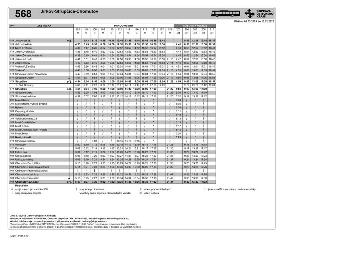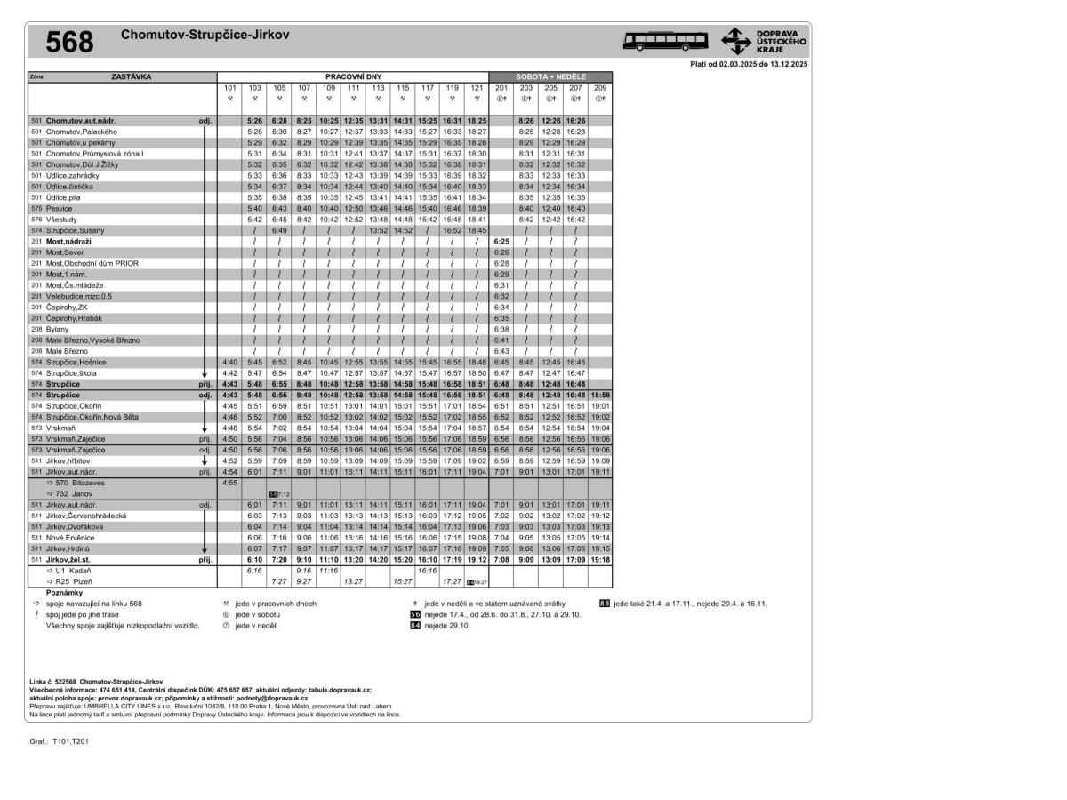 Jirkov – Ústecký kraj informuje o menší změně jízdního řádu autobusové linky 568 Chomutov – Strupčice – Jirkov s platností od 2. března.