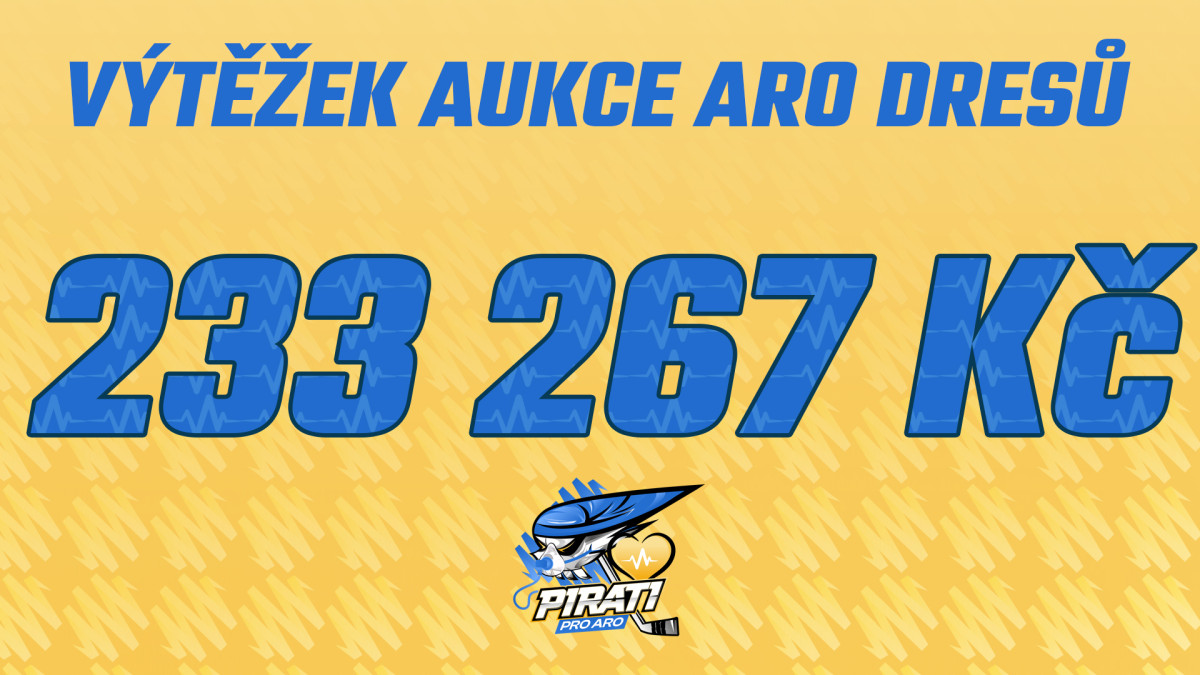 Chomutov – V pátek v 19 hodin bylo jasno, speciální dresy chomutovských Pirátů získaly nového majitele. Ke komu jednotlivé dresy poputují, o tom se rozhodovalo v internetové aukci. Ta vy nesla nakonec štědrých 233 267 korun. Peníze HC Piráti Chomutov věnují oddělení ARO chomutovské nemocnice.