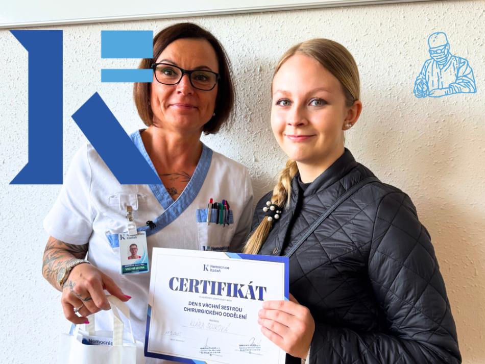 Klára se tak stala historicky první absolventkou našeho Dne s vrchní sestrou chirurgie, který Nemocnice Kadaň připravila pro studenty gymnázií a středních a vysokých zdravotnických škol. I když ona sama mezi ně už rok nepatří, přesto se akce, která má za cíl pomoci studentům ujasnit si, co chtějí jednou v životě dělat, zúčastnila, a my věříme, že se k nám do nemocnice po škole vrátí a stane se jednou z našich kolegyň. (TZ)