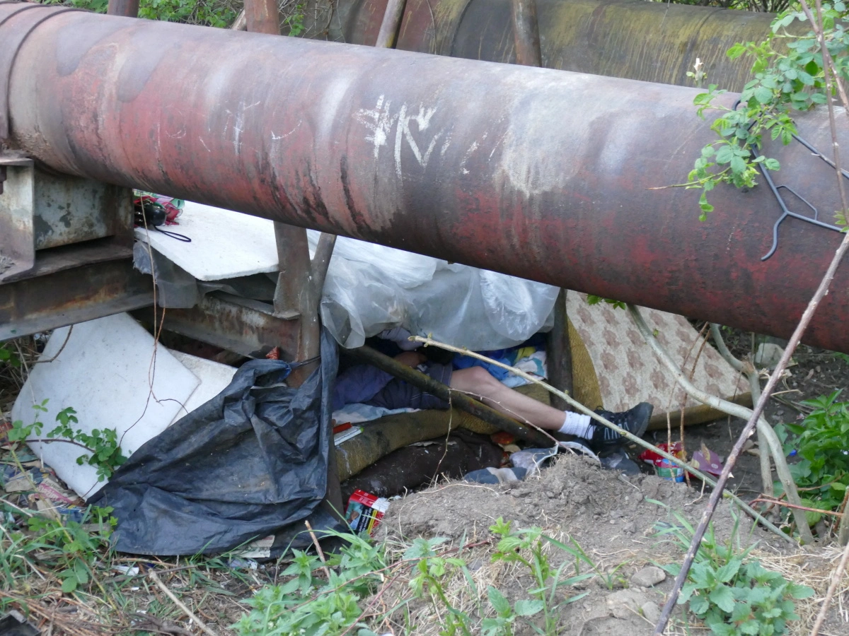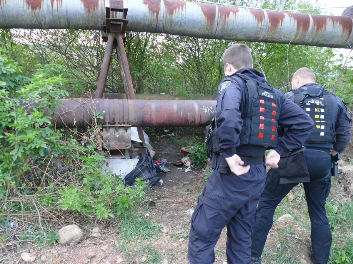 Chomutov – Strážníci Městské policie Chomutov provedli v neděli podvečer kontrolu v ulici Na Moráni, konkrétně v prostoru pod horkovodem, který je dlouhodobě známý jako místo, kde se zdržují osoby bez domova.
