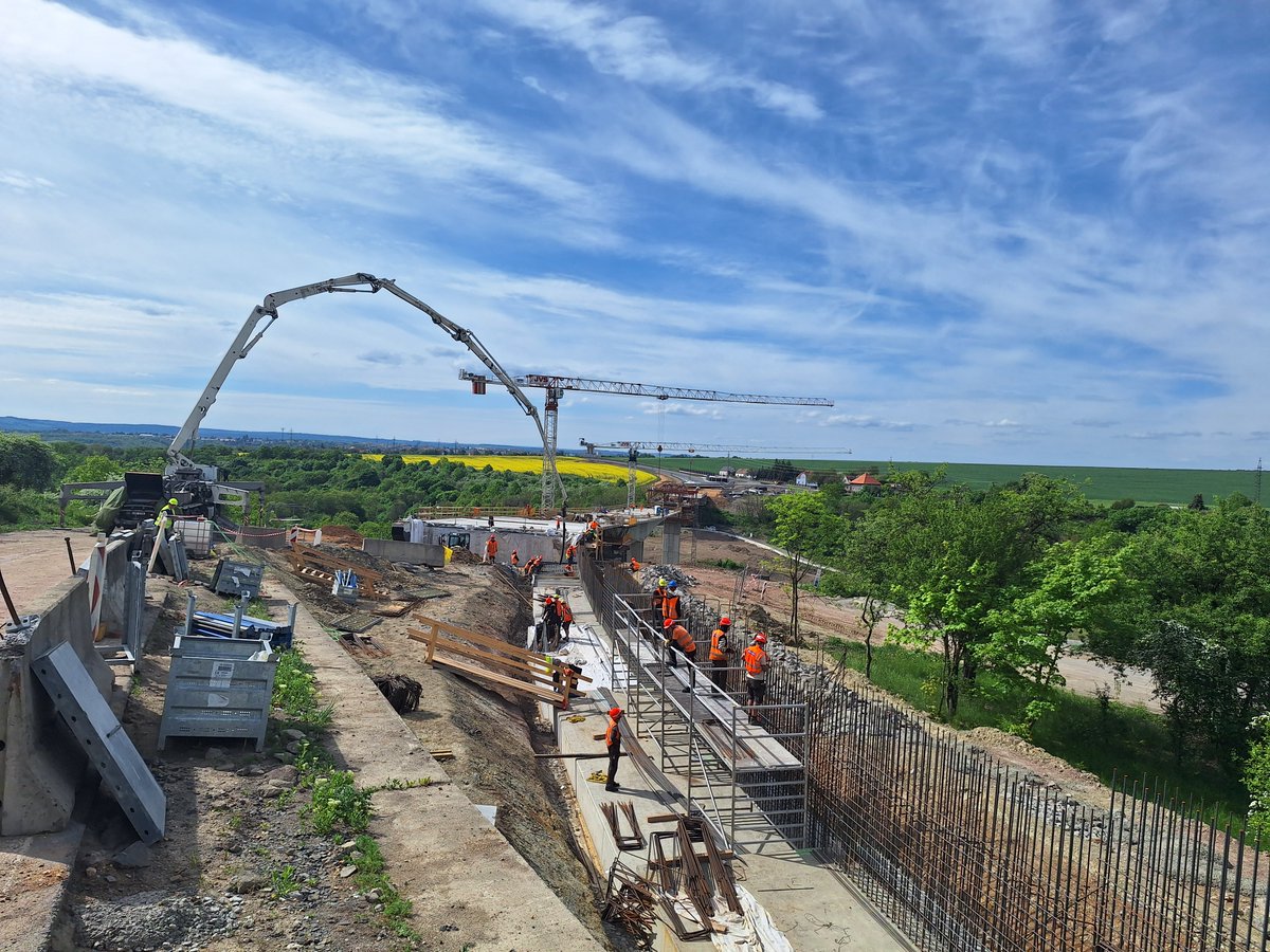 Žiželice – V rámci výstavby obchvatu Žiželic začala betonáž opěrné zdi navazující na opěru mostu na příjezdu z Mostu.