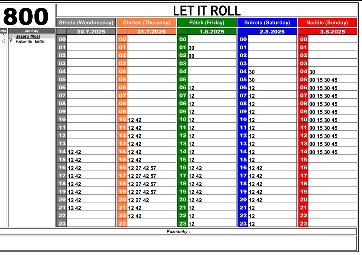 „DOPRAVNÍ PODNIK měst Mostu a Litvínova bude pro organizátora festivalu zajišťovat mimořádnou kyvadlovou doprava pro účastníky festivalu, a to od nádraží v Mostě (linka 801) a z centrálního parkoviště u letiště Most (linka 800)," informuje dopravní podnik.