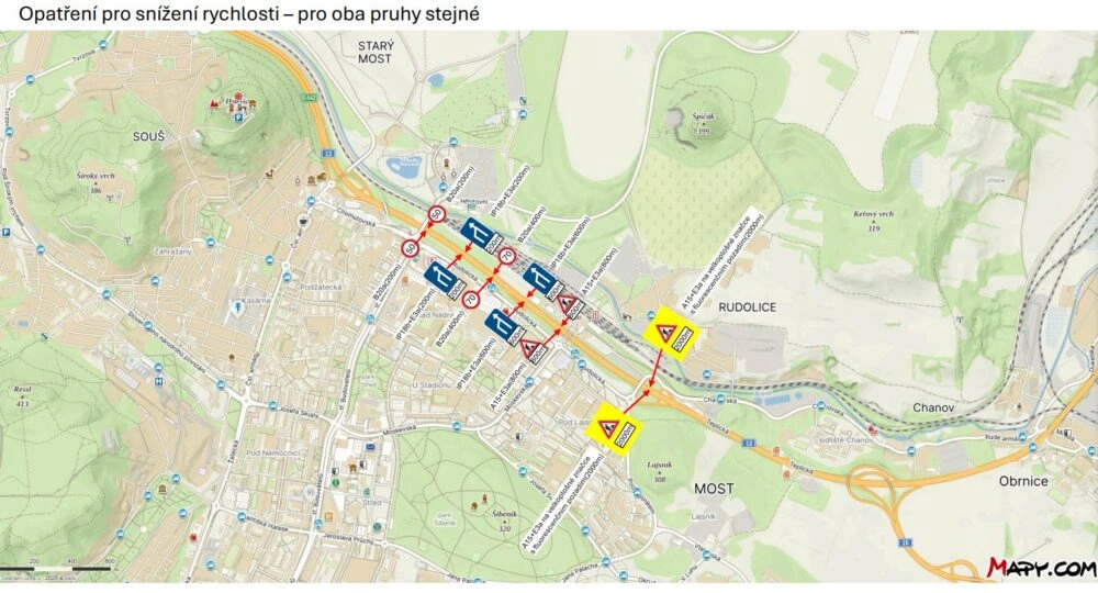 Most – Ředitelství silnic a dálnic Ústeckého kraje očekává, že ve čtvrtek 25. září začne oprava povrchu na silnici I/13 na průtahu Mostem. V rámci stavebních prací dojde k částečné uzavírce úseku v km 71,838–73,200 ve směru z Mostu na Chomutov. Uzavřen bude také nájezd na silnici I/13 v km 73. Doprava bude vedena po vyznačené objízdné trase.
