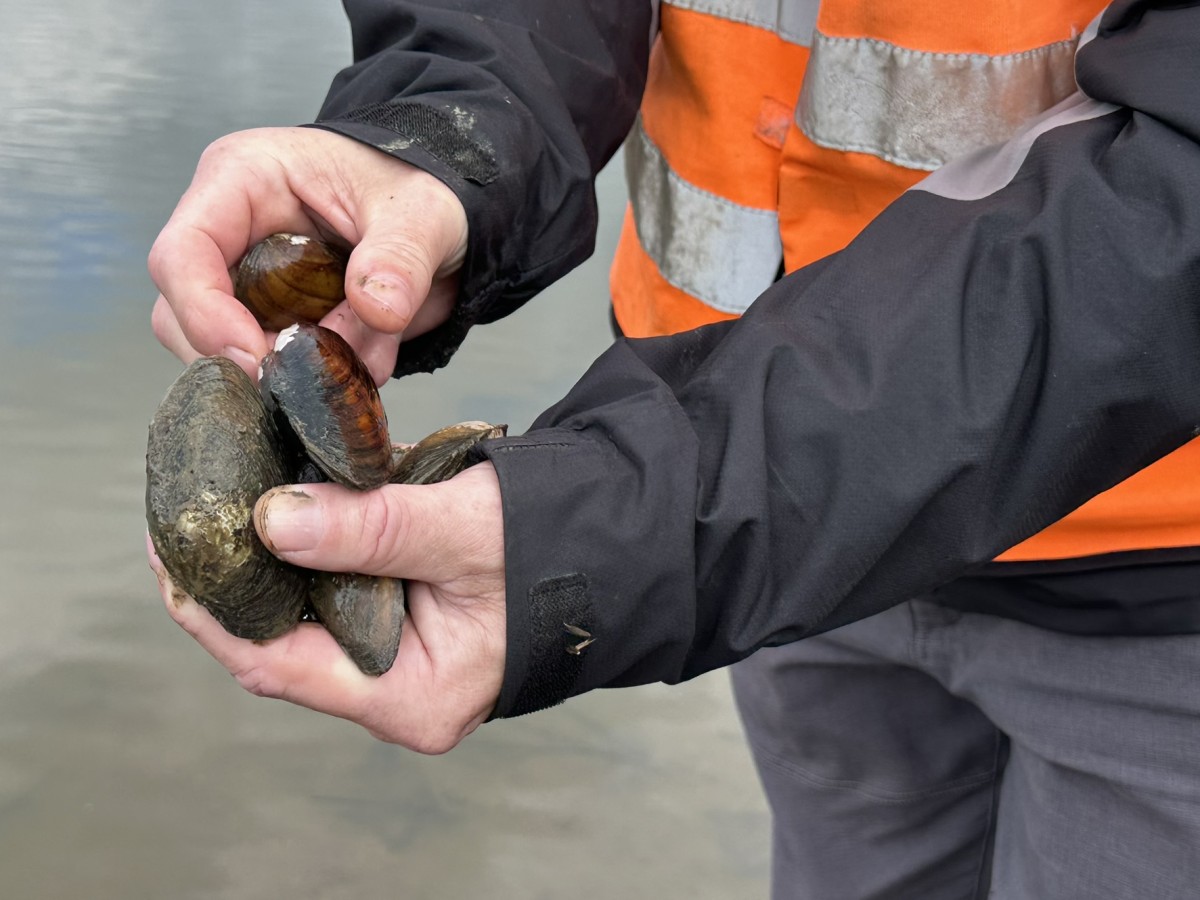 Pracovníci Povodí Ohře hledají na obnaženém břehu škeble a přesunují je do vody zhruba 20 cm od břehu. Foto: Povodí Ohře