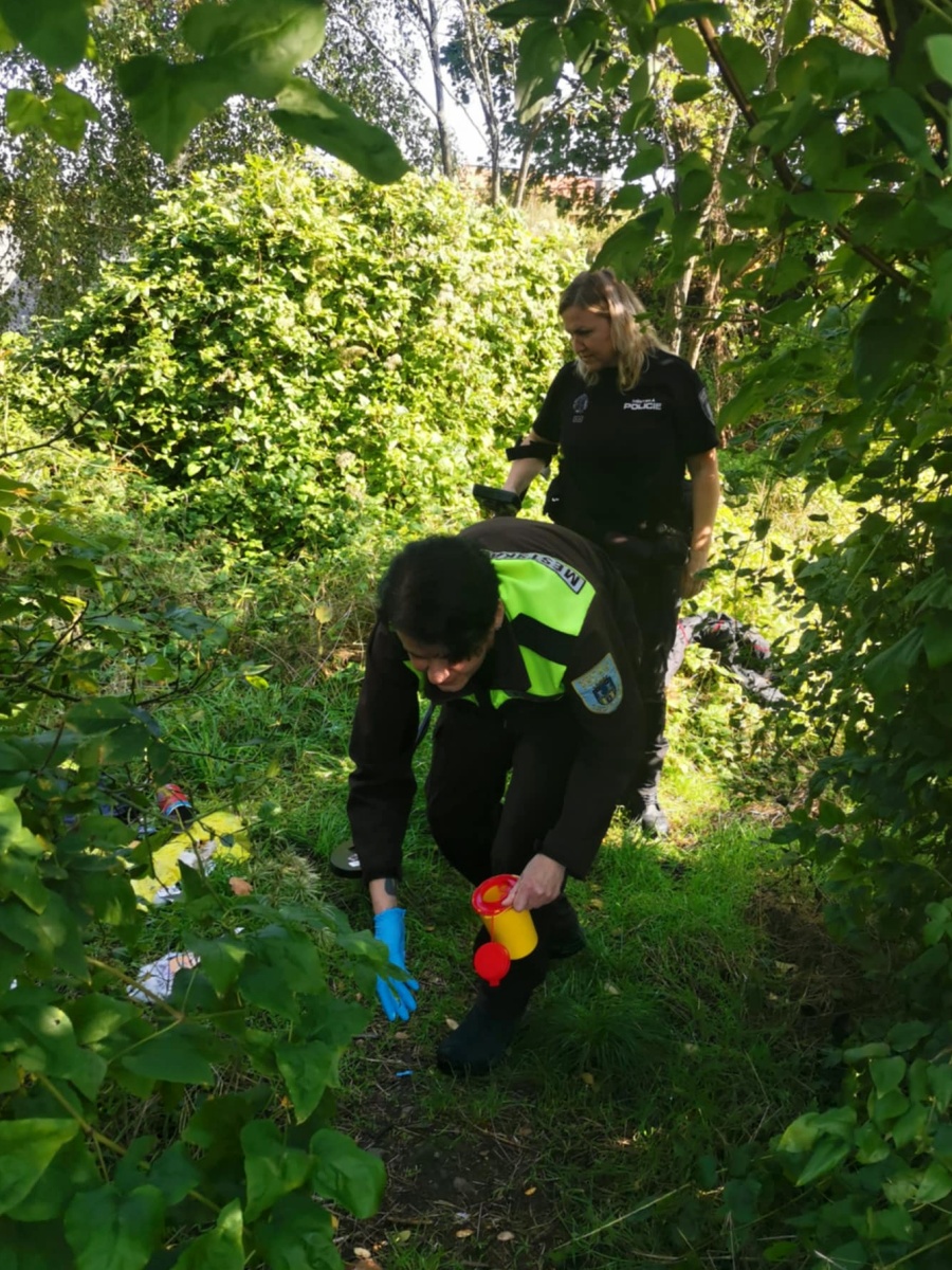 Dokud ještě počasí veřejnosti přeje, rozhodli se strážníci městské policie na úseku prevence obejít vytipované lokality a hledat použité injekční stříkačky. „Bohužel byli více než úspěšní. Nálezů bylo mnohem více než na hřištích sídlišť, která procházeli nedávno," uvedli strážníci, což zdokumentovali i fotograficky.