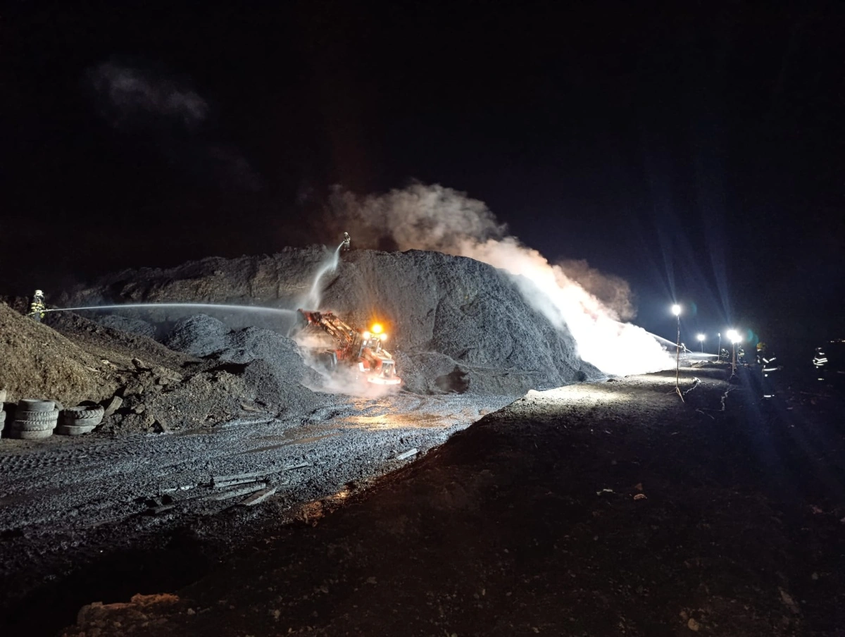 Litvínov – Hasiči v úterý večer opustili skládku Celio. Ale jen dočasně. Za světla se opět vrátí a budou pokračovat v prolévání hromad odpadu, které v pondělí brzy ráno zachvátil požár.
