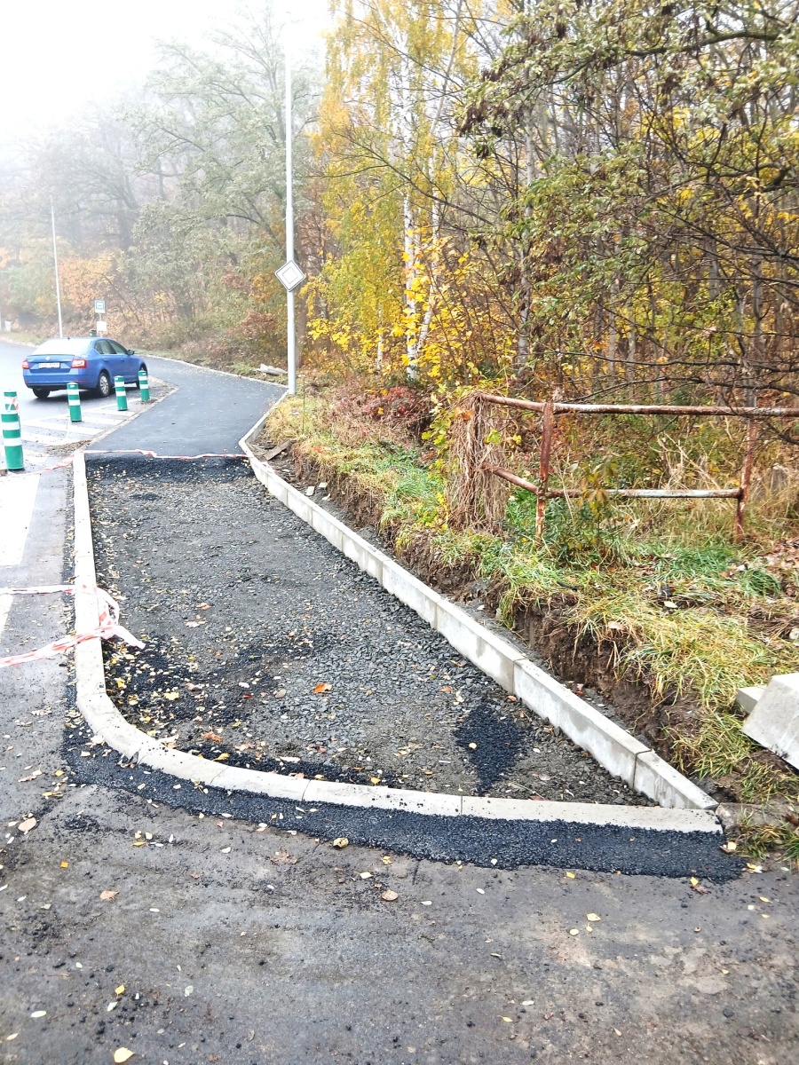 Práce pokračují například podél silnice na Boleboř. „U chodníku v křižovatce s ulicí Gen. Svobody probíhá v současné době pokládka zámkové dlažby na budovaných snížených vstupech na přechod pro chodce a vstupech do vozovky,“ uvedl mluvčí města Vladimír Vacula. Po dokončení terénních úprav se na své místo vrátí také dočasně demontovaný přístřešek autobusové zastávky.