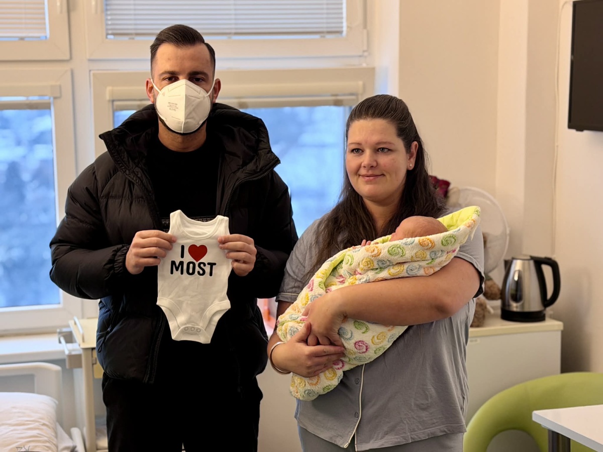 Rušno bylo v porodnici chomutovské nemocnice hned krátce po novoročním přípitku. Už v 1:21 ráno se mamince Lucii Kunclové narodil chlapeček Matyáš Koutný. S úctyhodnou váhou 4 000 gramů a mírou 52 centimetrů se stal prvním miminkem narozeným v chomutovské nemocnici v roce 2026.