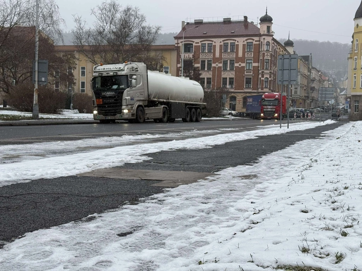 Sníh nepřestává padat a komplikace se kumulují především v horských stoupáních. Řidiči na Klášterecku upozorňují na problémy v úseku za Kláštercem nad Ohří ve směru na Perštejn. Podobná situace panuje i na hlavním tahu z Chomutova na Horu Svatého Šebestiána, kde kamiony jedou jen s nejvyšší opatrností a velmi pomalu.