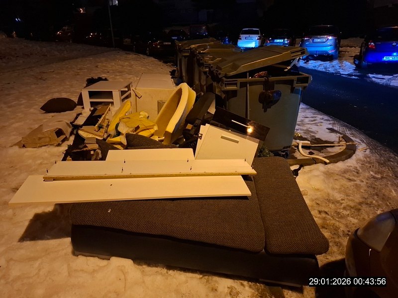 Při následné kontrole po půlnoci však strážníci zjistili, že odložený nábytek a další odpad u kontejnerů stále zůstává. Na místě byla pořízena fotodokumentace a celá událost byla oznámena příslušnému správnímu orgánu k dalšímu řešení.