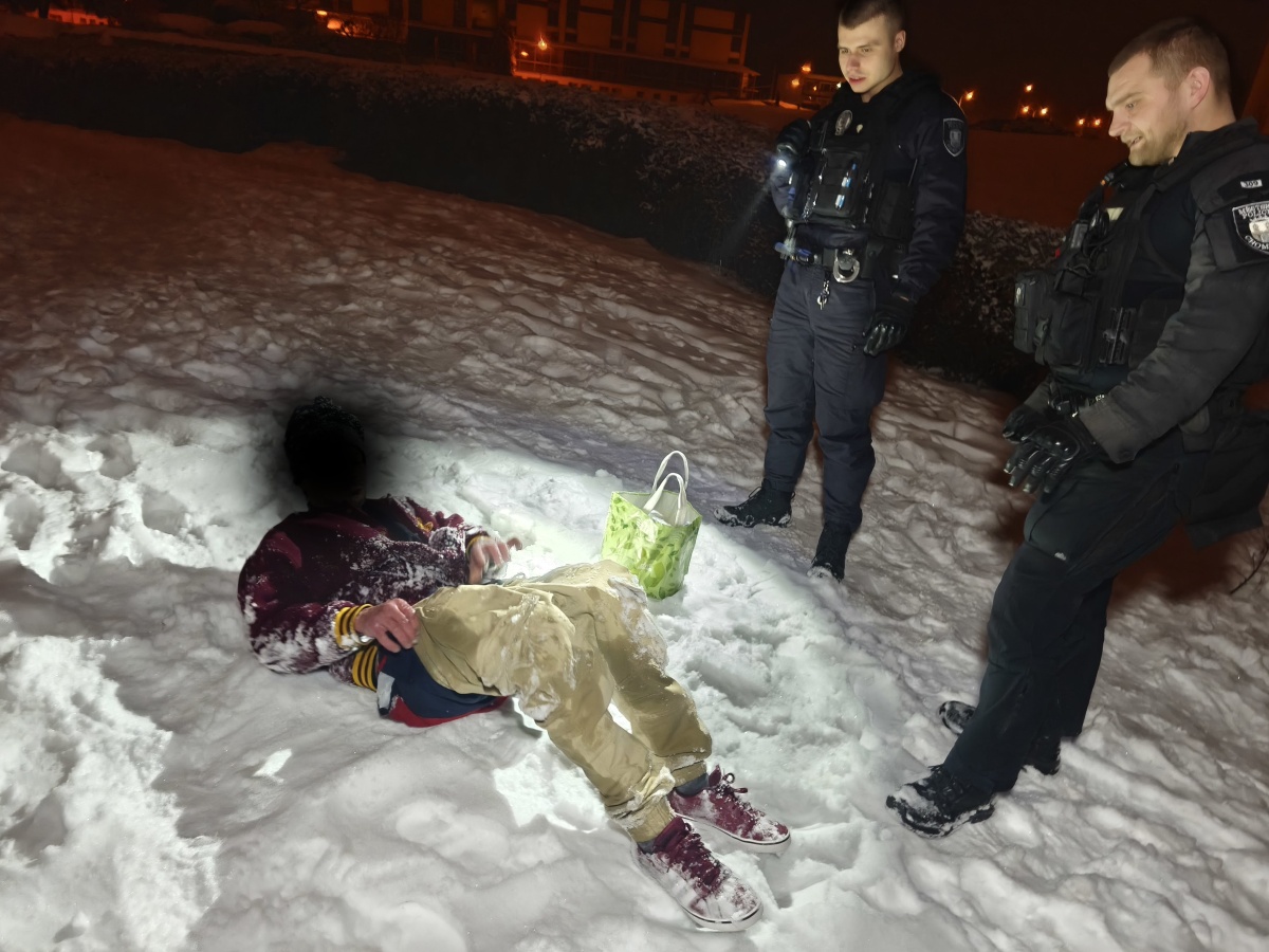 Na místo hlídku Městské policie Chomutov vyslalo operační středisko poté, co situaci nahlásil pozorný oznamovatel, který měl o muže nehybně ležícího v mrazu oprávněnou obavu. Hlídka muže skutečně nalezla v nezáviděníhodné pozici, kdy ležel na zemi a vedle něj se povalovala taška s nákupem, jejíž obsah byl částečně vysypaný do sněhu.