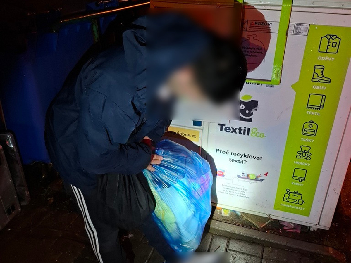Z kamerového záznamu bylo jasně patrné, že neznámý muž nejprve prohledával nádoby na směsný odpad, přičemž jejich obsah bezohledně vyhazoval ven na ulici. Poté se jeho pozornost přesunula ke kontejneru určenému na sběr použitého šatstva, ze kterého se mu podařilo vytáhnout modrý pytel s textilem. V tu chvíli se však již k místu blížila hlídka strážníků, kterou operátor okamžitě vyslal, aby protiprávní jednání ukončila.