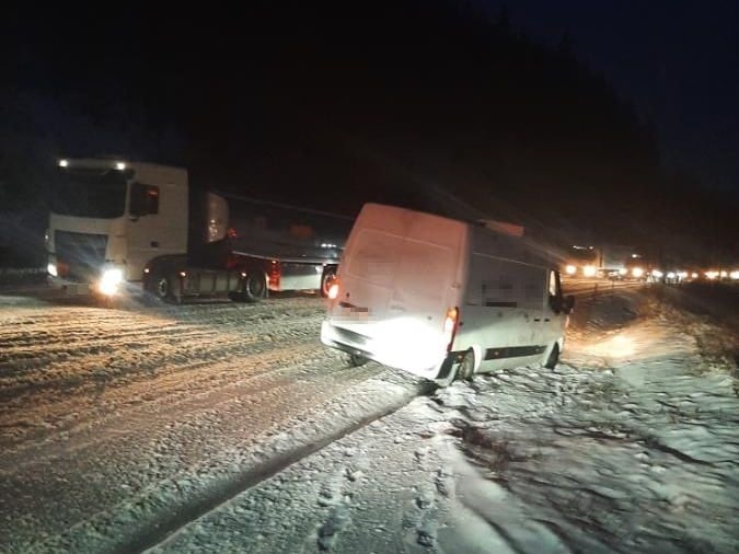 Od 5:30 ráno je kritická situace na 81. kilometru trasy Praha – Karlovy Vary. Kvůli mokrému sněhu a kluzké vozovce zde stojí kolona kamionů, které nemohou vyjet. Hrozí dopravní kolaps a tvoří se dlouhé fronty.