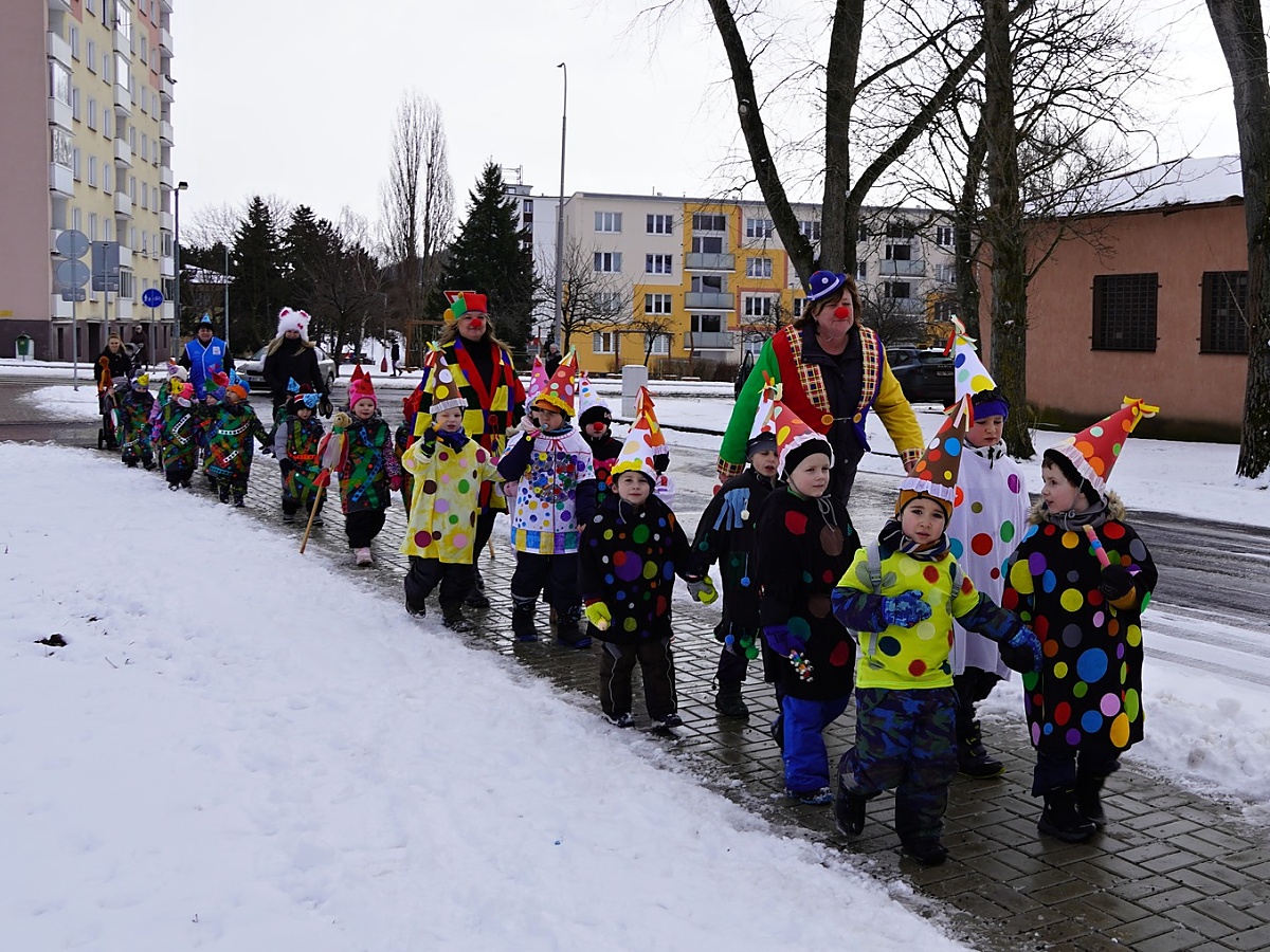 Masopustní oslavy začaly v jednotlivých školkách už od brzkého rána. Děti se nejprve vydaly v pestrobarevných průvodech do okolí svých škol, aby potěšily sousedy a připomněly starobylý lidový zvyk. Celé dopoledne pak vyvrcholilo společným setkáním v 10 hodin, kde se sešly školky z celého města.