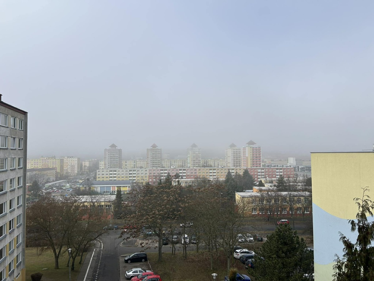 Rozdíl mezi slunným Chomutovem a mlhavým okolím není jen v barvě oblohy, ale hlavně v tom, co ukazuje teploměr.